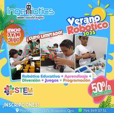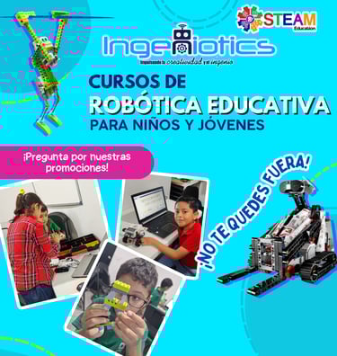 Ingeniotics es una academia enfocada en la enseñanza práctica y creativa, impulsamos el aprendizaje creativo en ciencia, tecnología y robótica basada en la metodología STEAM para niños, jóvenes y adultos.