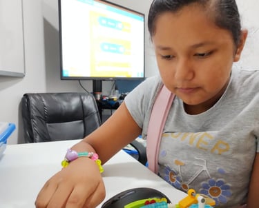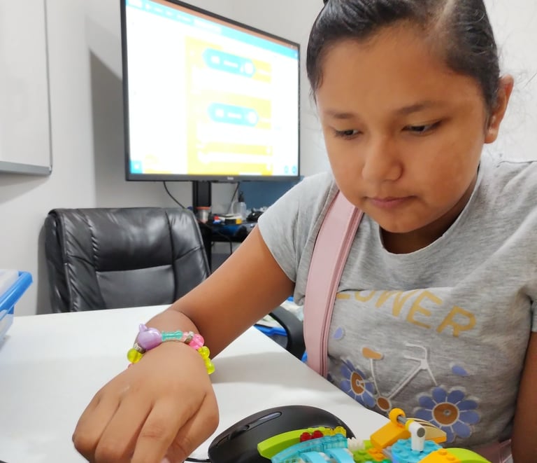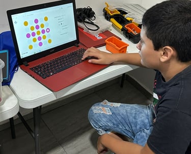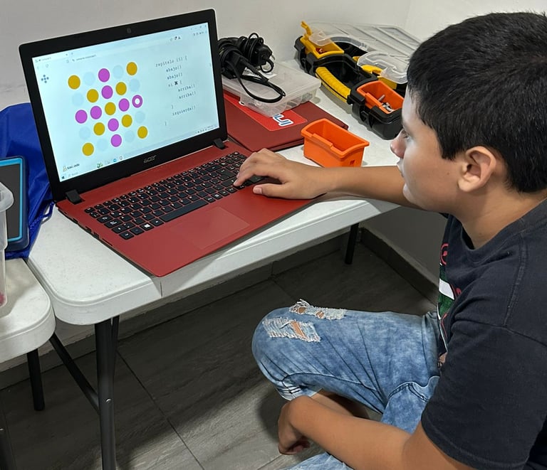 Los estudiantes aprenden los conceptos básicos de programación utilizando bloques visuales que realizan diferentes funciones.