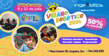 Los cursos de verano en Ingeniotics están diseñados para aprovechar las vacaciones de fin de ciclo escolar, proporcionando un entorno adecuado para fomentar y fortalecer habilidades socioemocionales y cognitivas en los estudiantes.